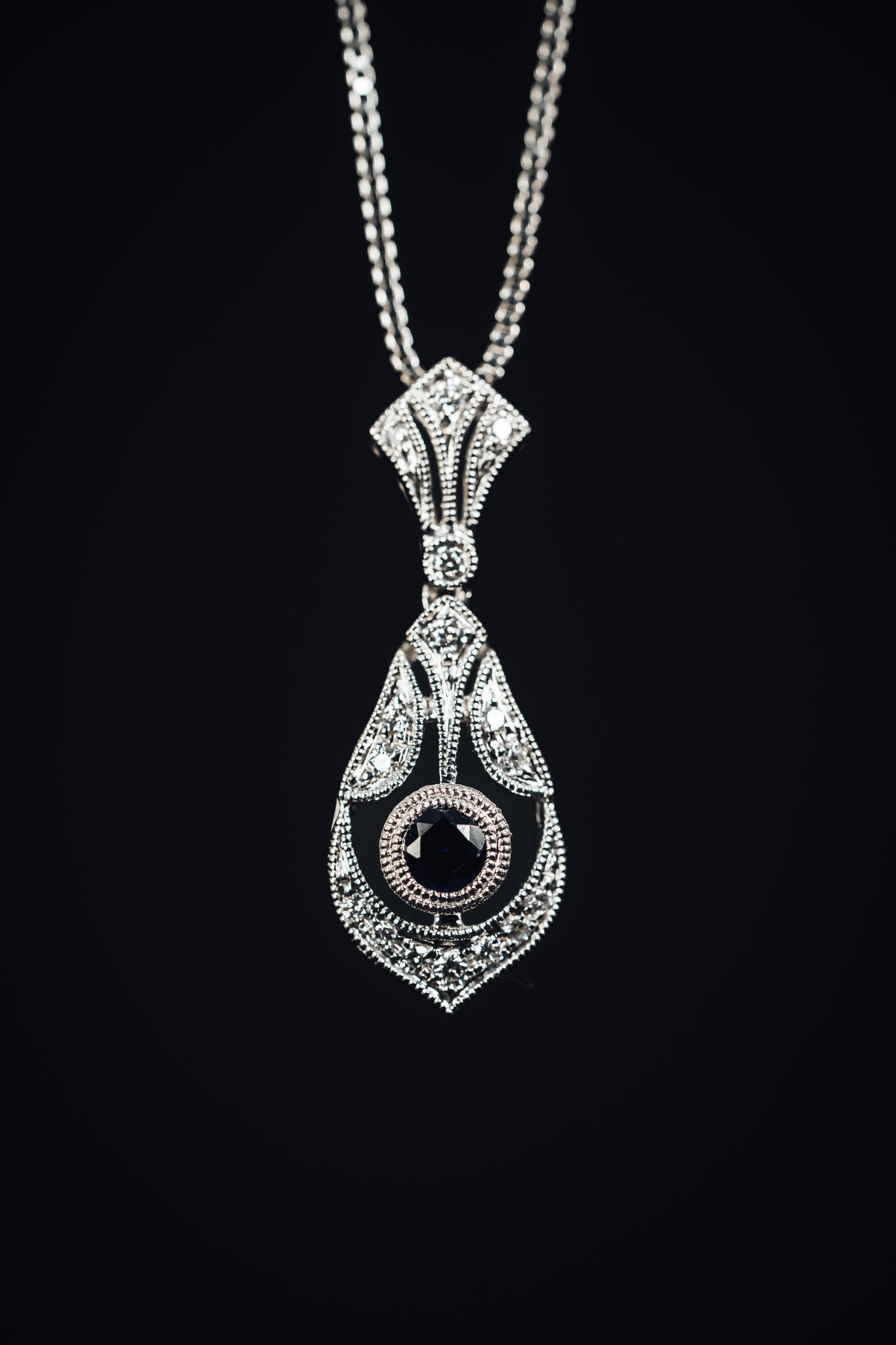 14k white gold vintage style pendant